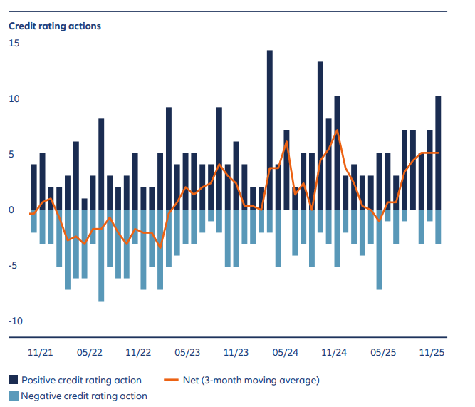 Another supportive factor is a predicted fall in sovereign issuance. Many sovereigns took advantage of strong market demand last year to pre-fund 2026 financing needs, with investment-grade sovereigns dominating issuance. We expect overall sovereign issuance to fall this year – with the exception of oil exporters, particularly in the Middle East, which may issue bonds to compensate for lower oil revenue. A combination of increased inflows and lower supply in 2026 is likely to support lower and more stable spreads.