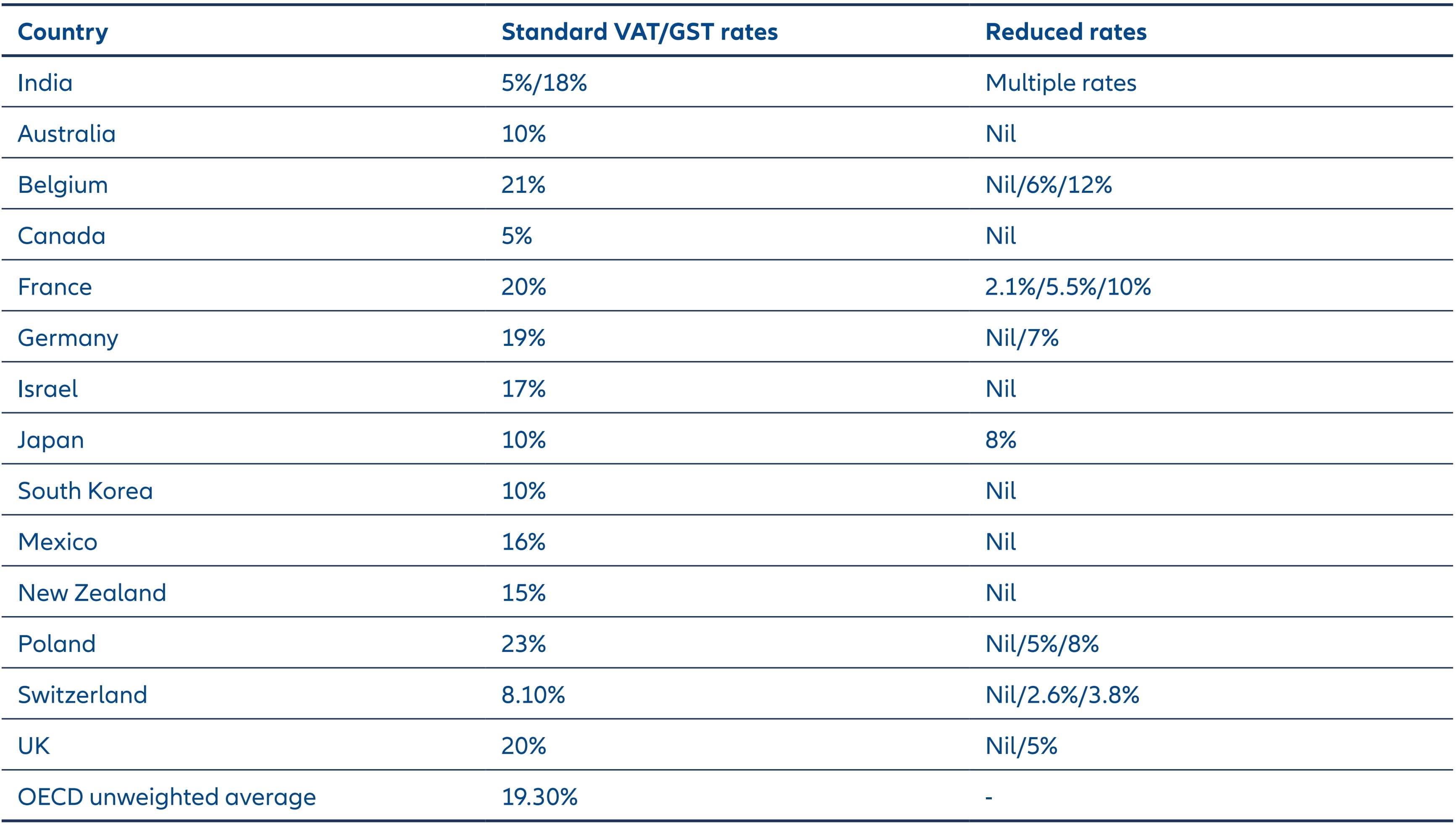 Table 1: Global tax rates