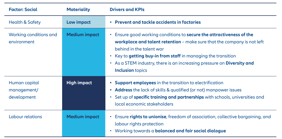 Exhibit 2: Materiality analysis for social factors of the Automotives sector